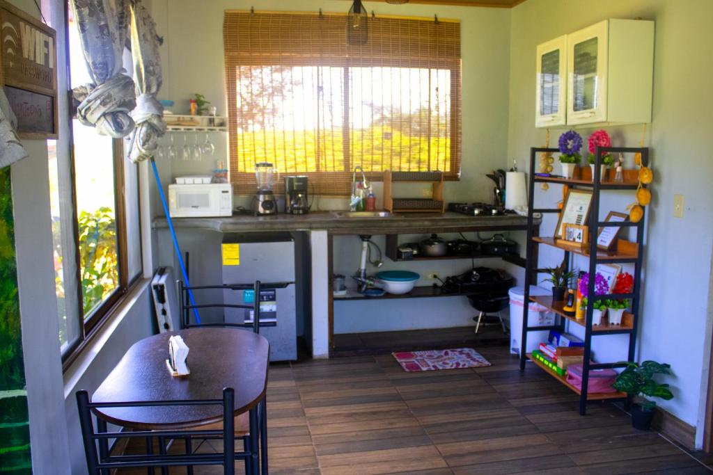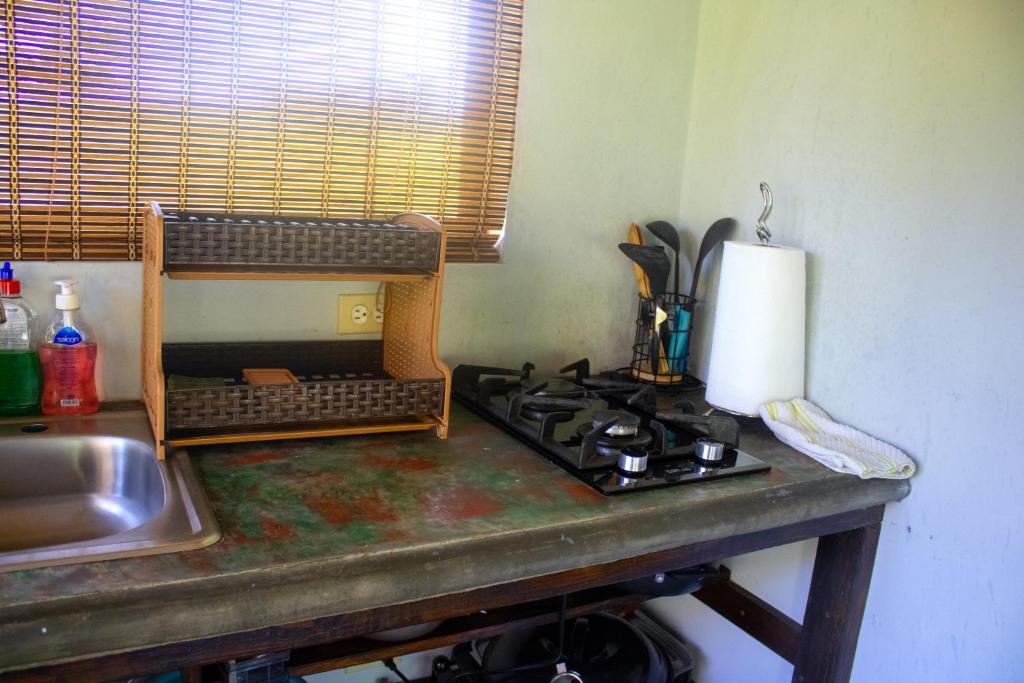 We have a beautiful, elegantly rustic, and fully equipped kitchen. It has everything you need to prepare your meals. It's small so as not to take up too much space in the cabin, but comfortable and well-proportioned.